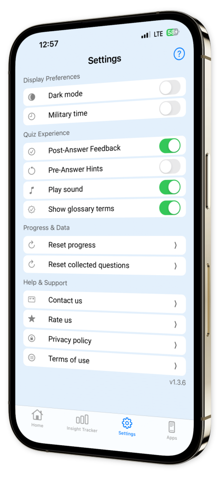 - Customizable Quizzes: Tailor your study sessions by selecting specific topics and question types, focusing on areas where you need the most improvement.